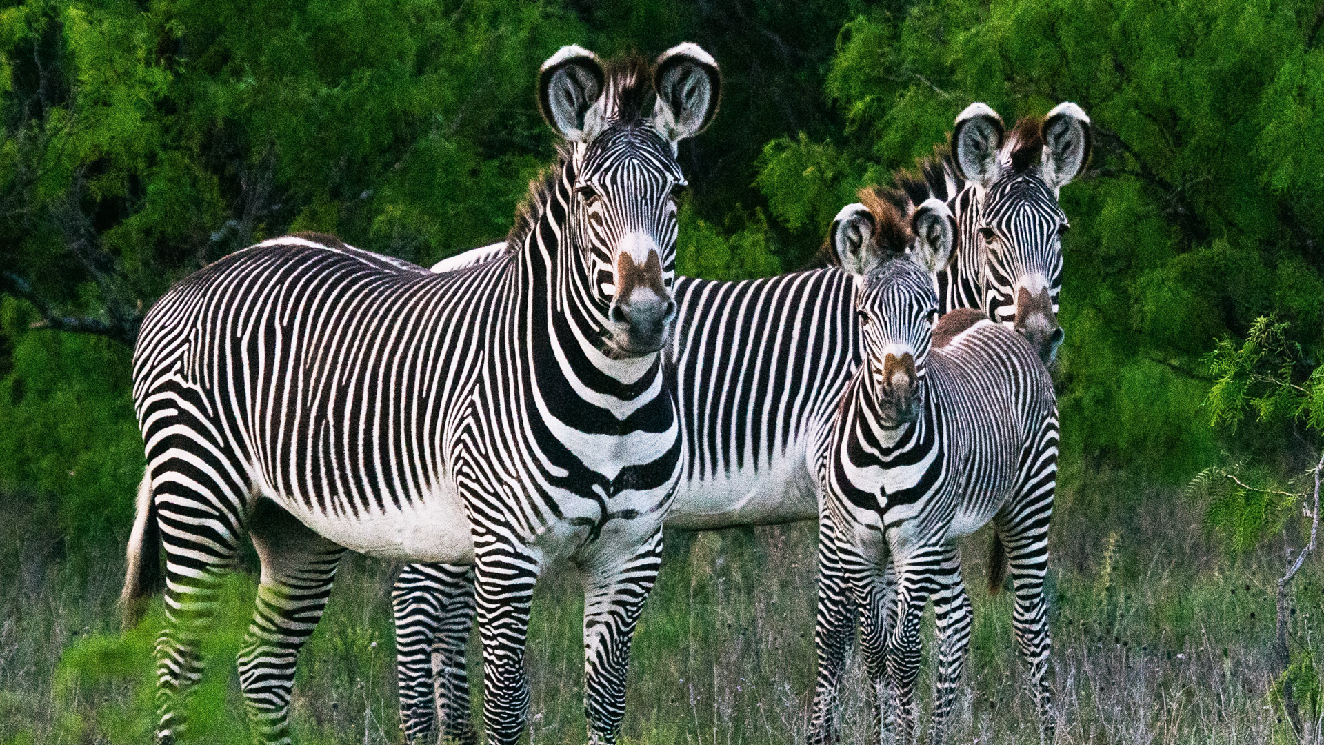 The Grévy's Zebra is the largest of all wild equines. It is 8ft to 9ft in head-body with a 22” to 30” tail, and stands 4.8” to 5.2” high at the withers. These zebras weigh 770 to 990 lbs.