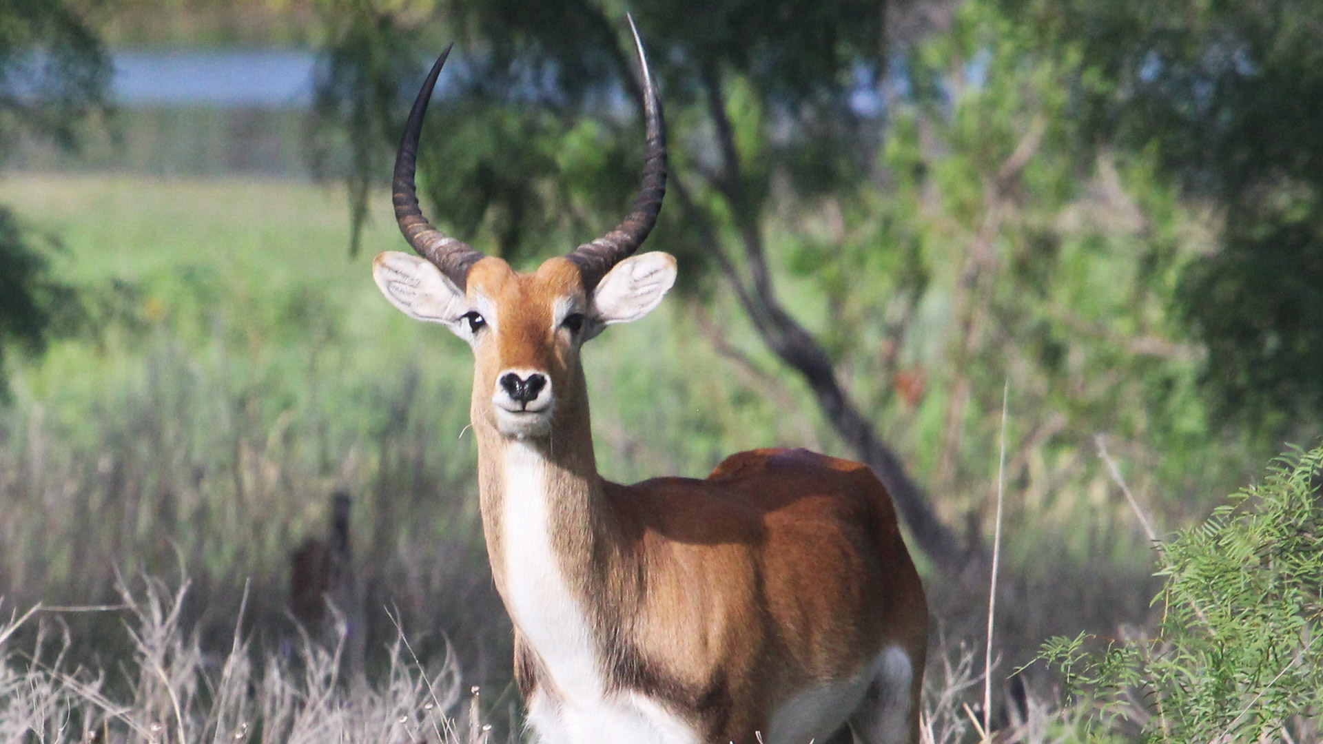Red Lechwe is native to Botswana, Zambia, the South-Eastern Democratic Republic of the Congo, North-Eastern Namibia, and Eastern Angola, especially in the Okavango Delta, Kafue Flats, and the Bangweulu Swamps.