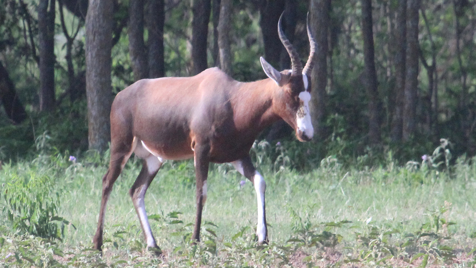 The Blesbok is endemic to Southern Africa and is found in large numbers in all national parks with open grasslands, North of the Vaal River southwards through the Free State, to the Eastern Cape. It is a plains species and dislikes wooded areas. It was first described in the 17th century, in bountiful herds